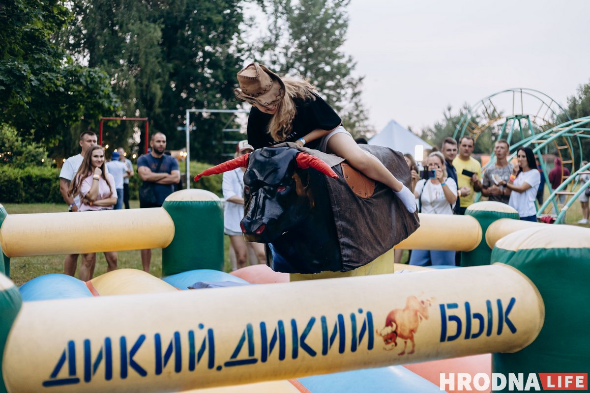 Примерно через час начала работать зона аттракционов: главным развлечением тут стал бык «родео». На нем нужно было удержаться как можно дольше, чтобы не упасть.