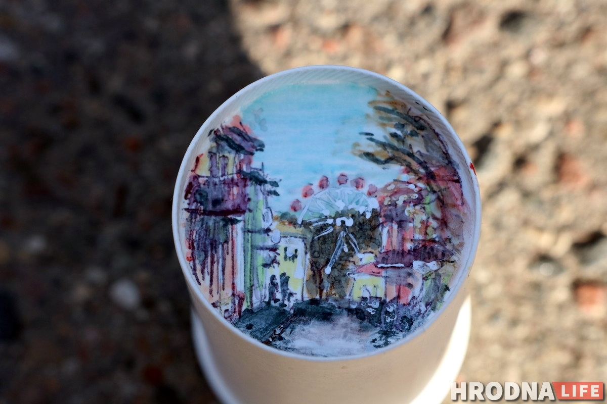 У гродненца Ярослава Кирвеля уже нескольких месяцев есть необычное хобби: он рисует на донышках использованных стаканчиков из-под кофе достопримечательности Гродно. А в будущем хочет нарисовать свою карту города.