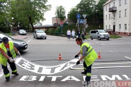 Первая надпись «Вітаем» появился на пешеходном переходе в районе автовокзала в конце апреля. К 9 мая в центре Гродно появится еще 5 таких надписей.…