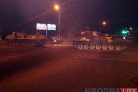 Приблизительно в 23.20 в пятницу 18 августа на улице Советских пограничников легковая машина врезалась в колонну самоходных артиллерийских установок, которая направлялась со стороны Лососно…