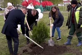 Деревья в сквере на площади Декабристов высадили в честь 100-летия органов торговли Беларуси и 80-летия образования Гродненской области. А еще там заложили капсулу времени…