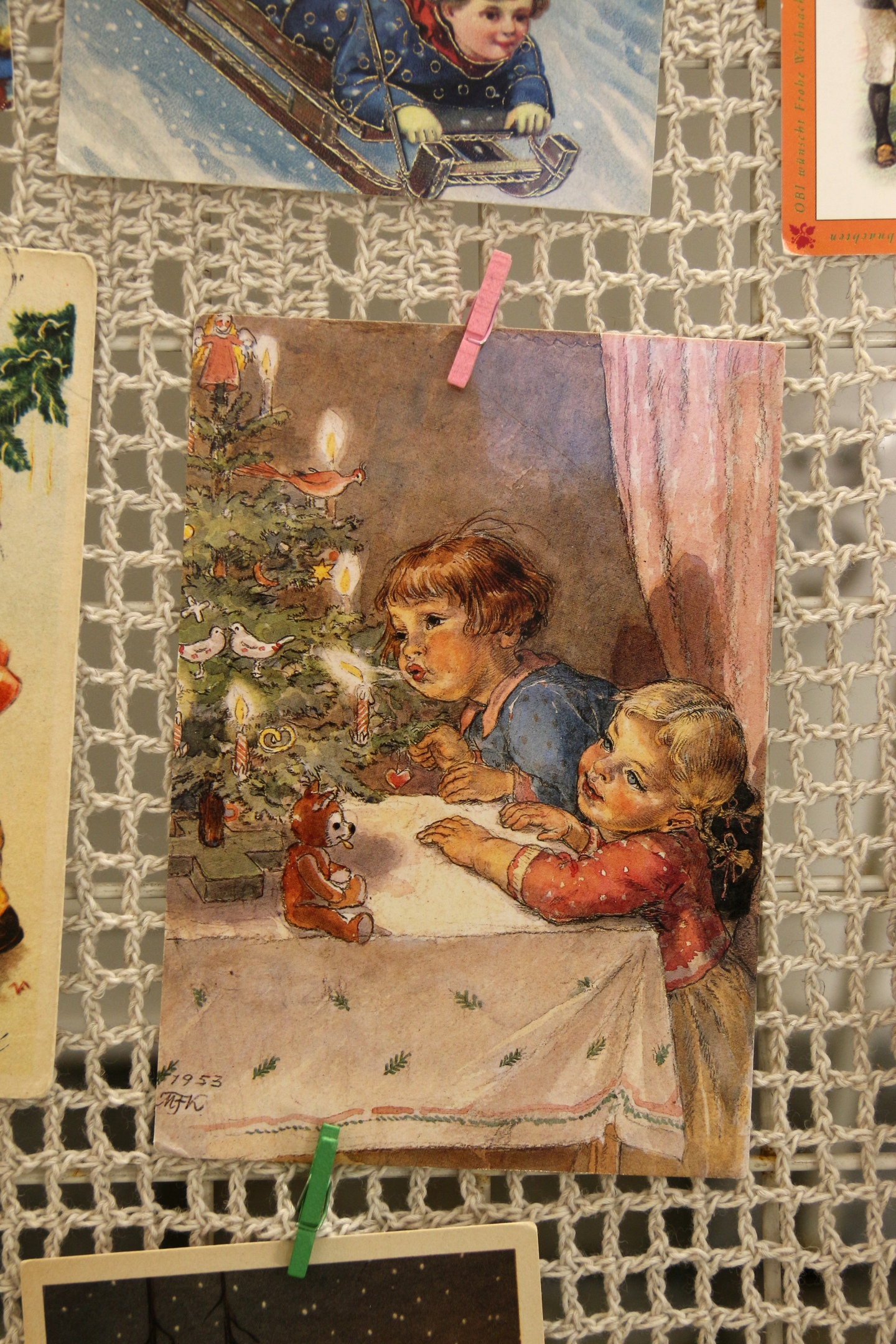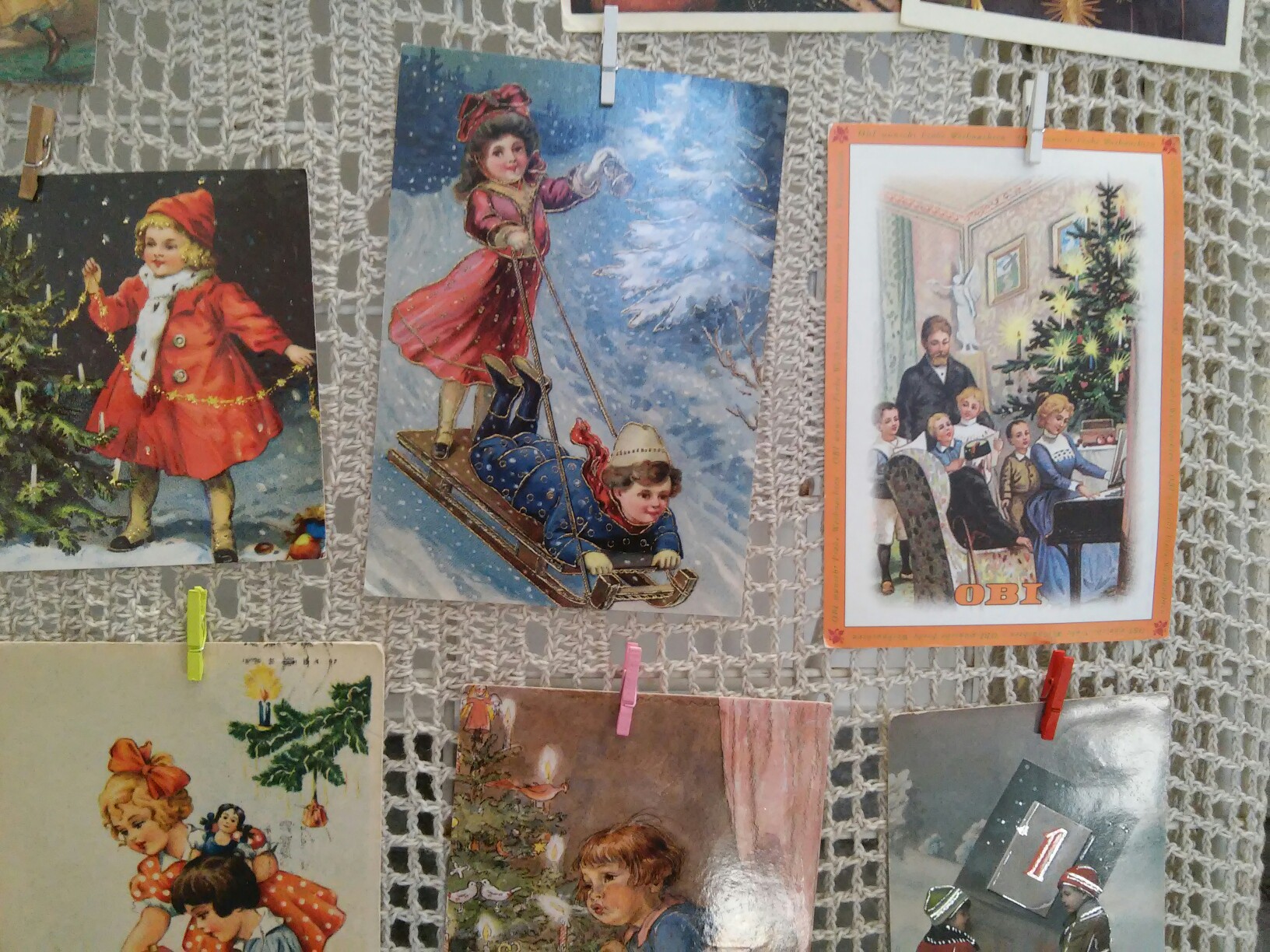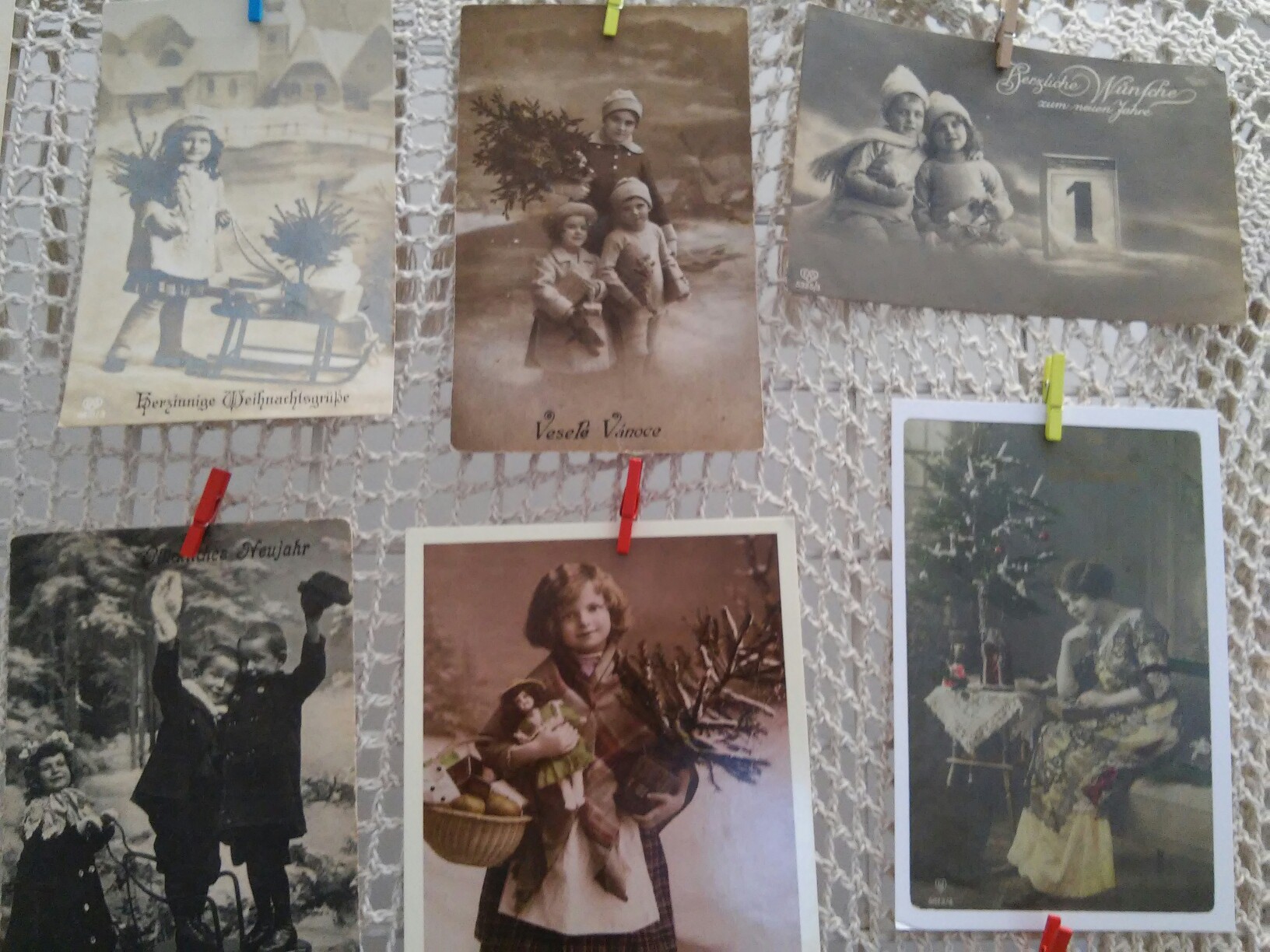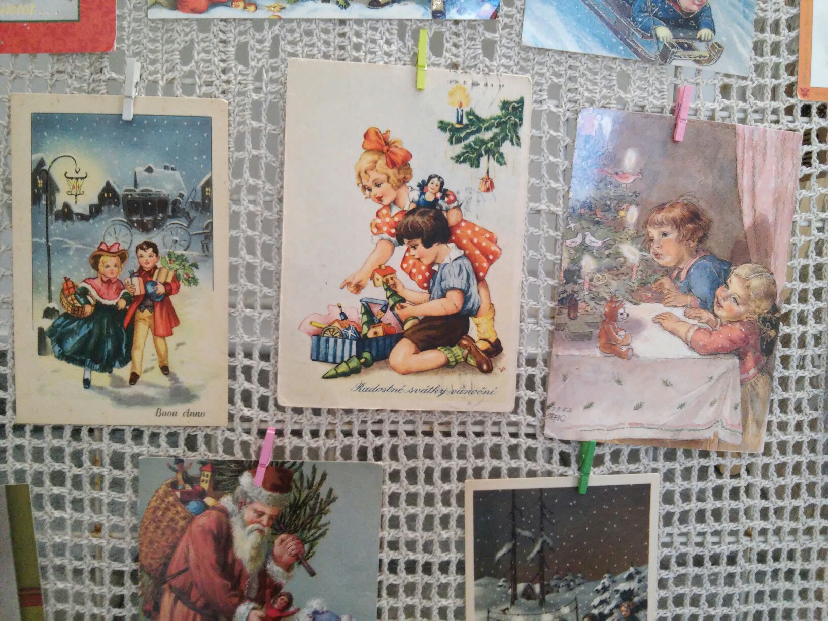 Самая старая паштоўка на каляднай выставе – 1902 года. Тады заўсёды падпісвалі дату, калі паштоўка была падораная. А калі дата не стаіць, час можна вызначыць па паштовым штэмпелі. Час і месца паходжання калекцыянерка можа вызначыць нават па якасці паперы і стылі малюнкаў. На гэтай выставе не ставілі мэту паказаць паштоўкі за ўсе гады. Гэтым разам на калядную выставу адмыслова падбіралі асобнікі з выявамі сям’і, дзетак, каб нагадаць пра гэтыя каштоўнасці. “Мы вельмі даўно адышлі ад паштовачак, на якіх сям’я”, – з сумам заўважае калекцыянерка.