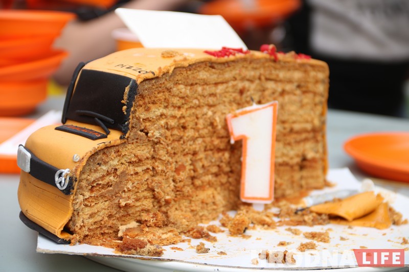 Паветраныя шарыкі і торт у выглядзе фургончыка 20 чэрвеня віталі гасцей на дні нараджэння гродзенскага піца-трака. Павіншаваць піцаёлаў прыйшлі сябры з суседніх офісаў, мастакі, супрацоўнікі дзіцячага хоспіса і жыхары бліжэйшых дамоў. “Мы ўсіх гэтых людзей ведаем, любім і рады бачыць ля нашага піца-трака сёння і штодня”, – прызнаўся саўладальнік піцатрака, піцаёла Павел Максімчык.