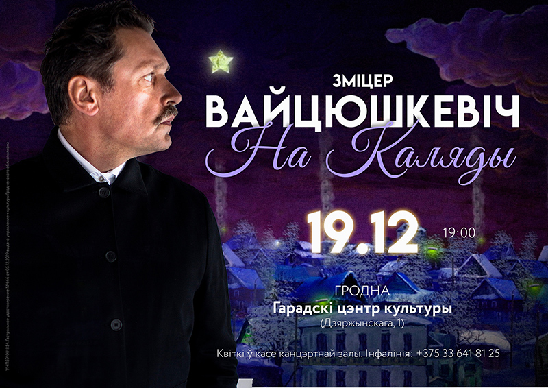 У Гродзенскім гарадскім цэнтры культуры прагучаць выбраныя святочныя кампазіцыі Змітра Вайцюшкевіча, а таксама лепшыя песні з розных праектаў.