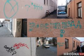 У пачатку студзеня на некалькіх дамах на вуліцы Замкавай з’явіліся дзіўныя надпісы. Больш за ўсё іх можна заўважыць недалёка ад уваходу ў былое гродзенскага…