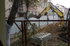 Вішню пры ходніку ламалі экскаватарам, бо, як адказалі будаўнікі, не было пілаў. Гэта адбылося ў суботу 11 мая, на будоўлі па вуліцы Вялікай Траецкай…